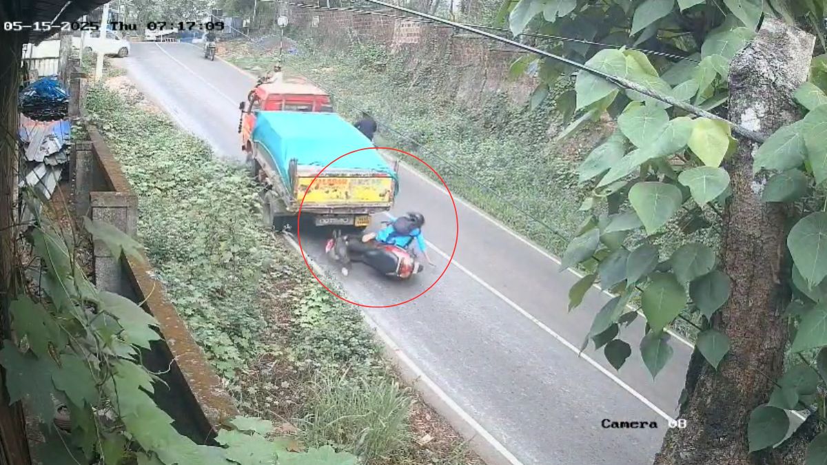 केरल में एक दर्दनाक हादसा होते-होते रह गया। हालांकि इस घटना का वीडियो सामने आया है, जिसे देखकर हर कोई हैरान है। इसमें एक महिला ट्रक के नीचे आने से बाल-बाल बच गई।