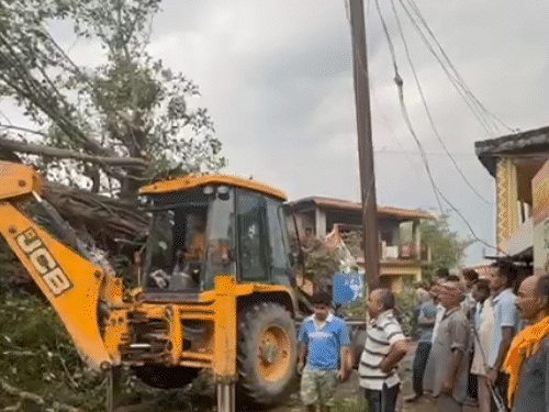 कांगड़ा जिले में आज सोमवार सुबह तूफान ने खूब तबाही मचाई है। नगरोटा बगवां की खोवा पंचायत में एक विशाल पेड़ सड़क किनारे खड़े ट्रक पर गिर गया। हादसे में ट्रक पूरी तरह क्षतिग्रस्त हो गया। प्रत्यक्षदर्शियों के अनुसार, घटना के समय ट्रक में कुछ लोग मौजूद थे। हालांकि, अभी तक किसी के फंसे होने की आधिकारिक पुष्टि नहीं हुई है। स्थानीय लोगों ने प्रशासन को इसकी सूचना दे दी है और अब राहत कार्य जारी है। सददूं पंचायत के नंबरदार और एंटी टेरेरिस्ट फ्रंट के अध्यक्ष बलविंदर सिंह बबलू ने दो जेसीबी मशीनें और एक हाइडर मौके पर भेजी हैं, जो ट्रक पर गिरे पेड़ को हटाने में जुटी है। मगर पेड़ बड़ा होने की वजह से इसे हटाने में वक्त लग रहा है। बता दें कि मौसम विभाग ने आज प्रदेश में भारी बारिश, तूफान और ओलावृष्टि का अलर्ट जारी कर रखा है। इसे देखते हुए लोगों को सावधानी बरतने को कहा गया है। कांगड़ा में आज सुबह साढ़े चार बजे ही तूफान चलना शुरू हो गया। इससे सुबह काफी देर तक कांगड़ा में बिजली भी गुल रही। बिजली के खंबे टूटे कांगड़ा जिला में आज तेज तूफान के बाद बिजली के कई खंबे भी गिर गए। इससे कई क्षेत्रों में बिजली भी गुल है। बिजली बोर्ड के अधिशासी अभियंता आदर्श भारद्वाज ने बताया विभाके कर्मी बिजली लाइन को बहाल करने में जुटे हुए है।
