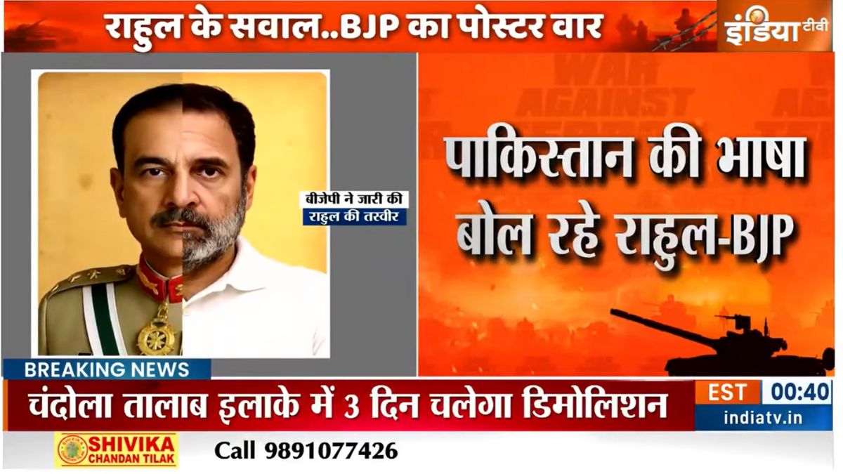 भारतीय जनता पार्टी ने राहुल गांधी पर निशाना साधा है। बीजेपी ने एक तस्वीर भी शेयर की है। इसमें आधा चेहरा राहुल गांधी का तो आधा चेहरा असीम मुनीर का लगाया गया है। इसके अलावा बीजेपी ने कहा है कि राहुल गांधी पाकिस्तान की भाषा बोल रहे हैं।