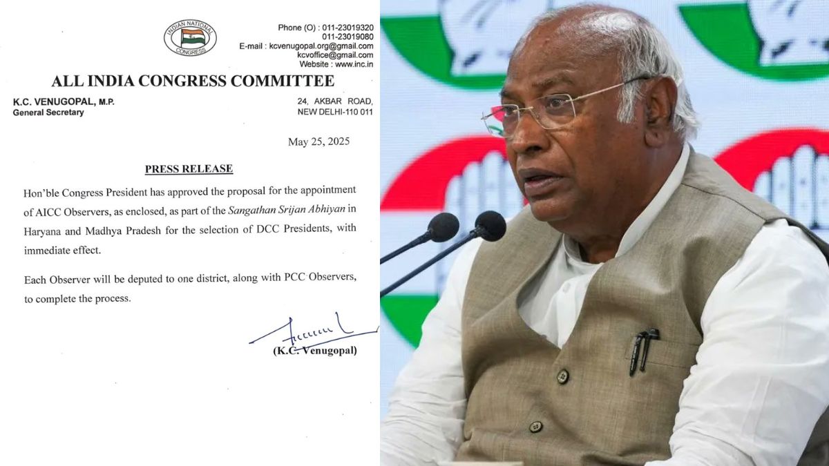 संगठन सृजन अभियान के तहत कांग्रेस पार्टी ने मध्य प्रदेश और हरियाणा में ऑब्जर्वरों की लिस्ट जारी की है। ये ऑब्जर्वर दोनों राज्यों ने जिला स्तर पर संगठन के लिए काम करेंगे। इसमें नए जिलाध्यक्षों की नियुक्ति भी की जाएगी।