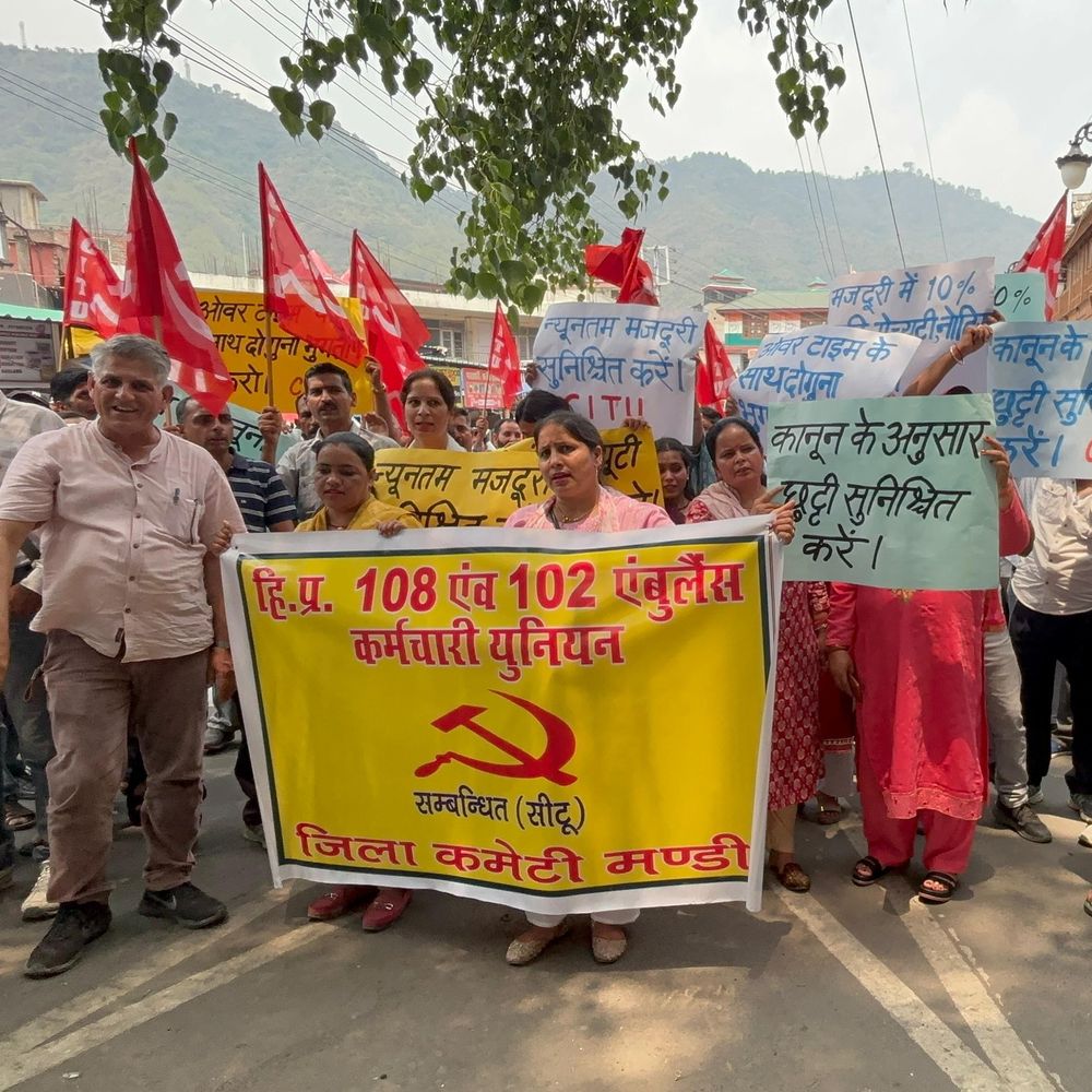 हिमाचल प्रदेश में 108 और 102 एम्बुलेंस सेवाओं के कर्मचारी 27 मई की मध्यरात्रि से हड़ताल पर हैं। मंडी जिले में 31 लोकेशन पर कार्यरत 163 कर्मचारियों ने काम रोक दिया है। इनमें 71 पायलट और 80 इमरजेंसी मेडिसिन तकनीशियन शामिल हैं। कर्मचारियों ने जिला मुख्यालय मंडी में विरोध रैली निकाली। रेहड़ी-फड़ी और फोरलेन वर्करज यूनियन ने भी प्रदर्शन में समर्थन दिया। सीटू के जिला प्रधान भुपेंद्र सिंह ने बताया कि एनएचएम के तहत मेडस्वेन फाउंडेशन में काम कर रहे कर्मचारियों को न्यूनतम वेतन नहीं मिल रहा है। कर्मचारियों से 12 घंटे ड्यूटी करवाई जाती है, लेकिन ओवरटाइम का भुगतान नहीं किया जाता। कर्मचारियों को मानसिक रूप से प्रताड़ित करने का आरोप कंपनी हाईकोर्ट, लेबर कोर्ट, सीजेएस कोर्ट और श्रम विभाग के दिशा-निर्देशों का पालन नहीं कर रही है। यूनियन से जुड़े कर्मचारियों को मानसिक रूप से प्रताड़ित किया जाता है। उन्हें नौकरी छोड़ने का दबाव बनाया जाता है। ग्रेच्युटी और नोटिस पे नहीं दिया पहले ये कर्मचारी जीवीके-इएमआरआई कंपनी में थे। कंपनी बदलने पर इन्हें निकाल दिया गया था। सीटू से जुड़ने और आंदोलन के बाद मेडस्वेन ने दोबारा नौकरी दी, लेकिन छंटनी भत्ता, ग्रेच्युटी और नोटिस पे नहीं दिया गया। यूनियन ने चेतावनी दी है कि अगर मांगें नहीं मानी गईं तो अनिश्चितकालीन हड़ताल की जाएगी।