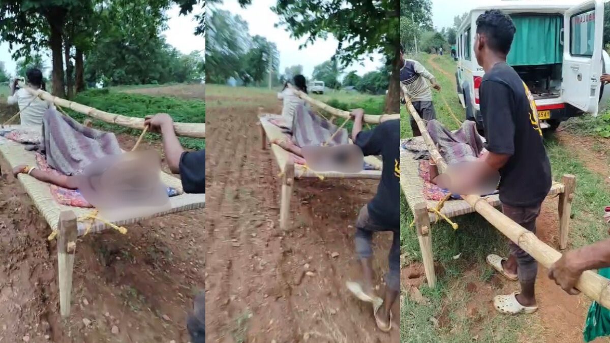 ओडिशा के नवरंगपुर में सड़क न होने के कारण गर्भवती महिला को खाट पर 2.5 किमी तक ले जाया गया। एम्बुलेंस जब तक स्वास्थ्य केंद्र की ओर बढ़ी तब तक काफी देर हो गई थी।