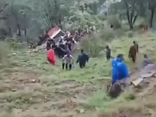 हिमाचल प्रदेश के मंडी में आज (मंगलवार) सुबह एक प्राइवेट बस दुर्घटनाग्रस्त हो गई। यह हादसा कलखर-पटड़ीघाट सड़क पर हुआ। इसमें 15 से ज्यादा लोग घायल होना बताए जा रहे हैं। सूचना के अनुसार, यह बस जाहू-पटड़ीघाट-कलखर से मंडी आ रही थी। यह इलाका थाना हटली के अंतर्गत आता है। स्थानीय प्रशासन राहत एवं बचाव कार्य के लिए मौके पर पहुंच गया है। मगर तेज बारिश राहत एवं बचाव कार्य में बाधा उत्पन्न कर रही है। बस सड़क से करीब 200 फीट नीचे गहरी खाई में गिरी है। स्थानीय लोग पुलिस के साथ घायलों को सड़क तक पहुंचा रहे हैं। यहां से एंबुलेंस के जरिए घायलों को अस्पताल पहुंचाया जा रहा है। हादसे के कारणों का अभी पता नहीं चल पाया है। बस के पलटते ही चीख-पुकार मचनी शुरू हो गई। यहां देखे मंडी बस हादसे से जुड़ी PHOTOS.. इस खबर को हम अपडेट कर रहे हैं।