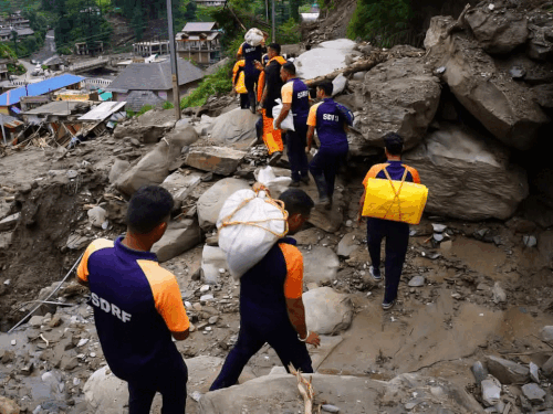 हिमाचल प्रदेश के मंडी में प्राकृतिक आपदा के बाद एसडीआरएफ का राहत और बचाव कार्य जारी है। टीम घरों तक राशन और मेडिकल किट पहुंचा रही है। इसके लिए ड्रोन की मदद ली जा रही है। 30 जून की रात आई आपदा के बाद एसडीआरएफ की टीम सबसे पहले पंडोह से थुनाग पहुंची थी। एक जुलाई को एसडीआरएफ जवान बगस्याड पहुंचे। रास्ते में गिरे पेड़ों को हटाया। अगले दिन पैदल चलकर थुनाग पहुंचे। सैटेलाइट फोन से नुकसान की जानकारी जिला प्रशासन को दी। 3 जुलाई को टीम जंजैहली पहुंची। इसी दिन 12 जवानों की एक और टीम लापता लोगों की खोज के लिए थुनाग भेजी गई। लापता लोगों की तलाश जारी