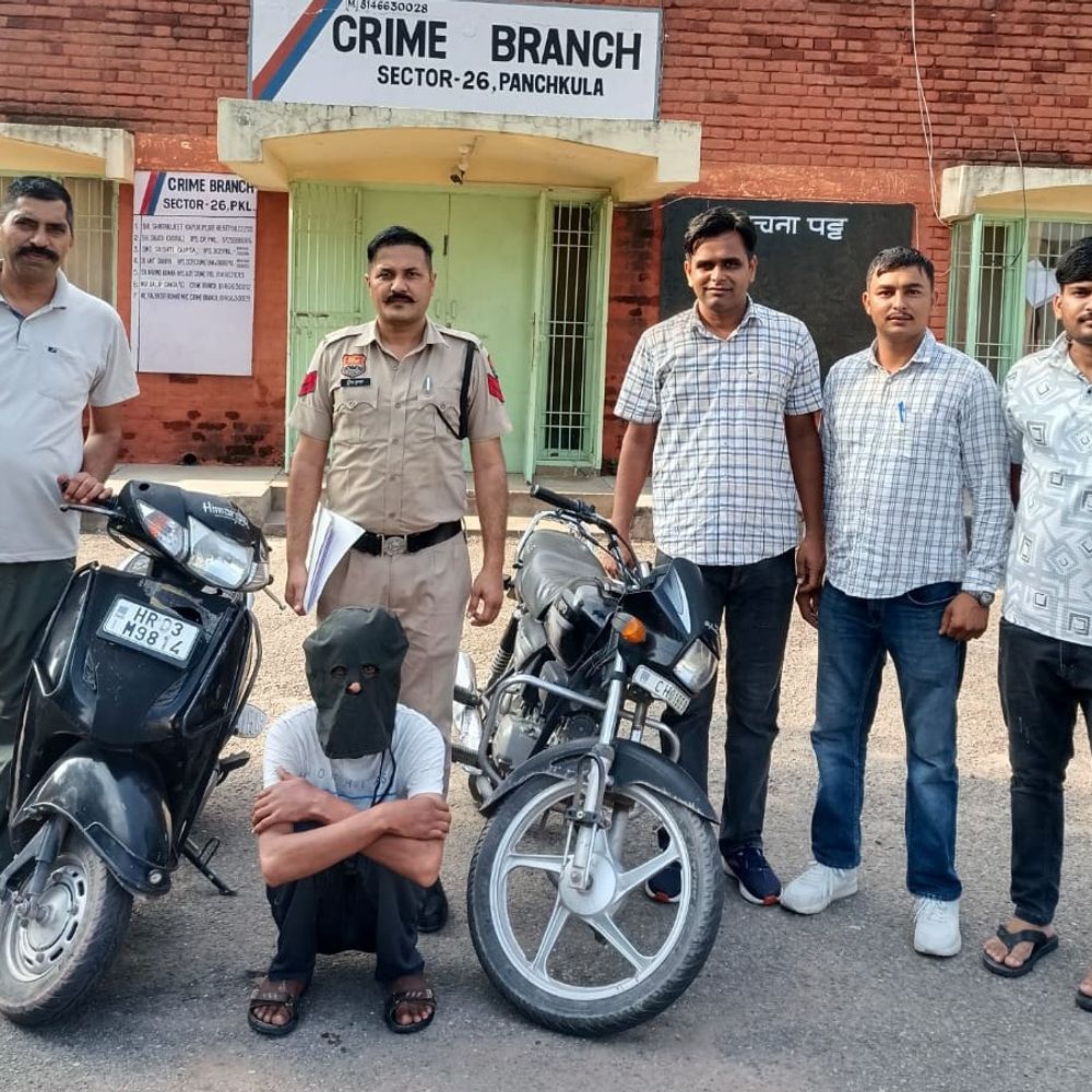 पंचकूला एसीपी क्राइम अरविंद कंबोज के नेतृत्व में क्राइम ब्रांच सेक्टर-26 पंचकूला के इंचार्ज इंस्पेक्टर दलीप सिंह की टीम ने एक वाहन चोर को काबू किया है। आरोपी की पहचान साबिर खान पुत्र फिरोज खान निवासी सोलन, जिला सिरमौर (हिमाचल प्रदेश) के रूप में हुई है, जो वर्तमान में मॉडल एन्क्लेव, बलटाना, थाना जीरकपुर, जिला मोहाली, पंजाब में रह रहा था। पुलिस प्रवक्ता ने बताया कि 7 जुलाई को गांव माजरी निवासी रोशन लाल ने थाना सेक्टर पांच में शिकायत दर्ज कराई थी कि 5 जुलाई को उसकी स्कूटी गांव माजरी स्थित दुकान के सामने पेड़ के नीचे खड़ी थी, जिसे किसी अज्ञात व्यक्ति द्वारा चोरी कर लिया गया। इस शिकायत के आधार पर मामला दर्ज कर जांच शुरू की गई। पहले भी कर चुका कई वारदात क्राइम ब्रांच सेक्टर 26 पंचकूला के मुख्य सिपाही सुरेश कुमार को गुप्त सूचना मिली, जिसके आधार पर आरोपी साबिर खान को काबू किया गया। पूछताछ के दौरान आरोपी ने स्कूटी चोरी की वारदात को कबूल किया, जिसके बाद उसे गिरफ्तार क्या गया। आज यानी 19 जुलाई को आरोपी को कोर्ट में पेश कर एक दिन का रिमांड प्राप्त किया गया। पुलिस पूछताछ के दौरान आरोपी ने पहले भी कई वाहनों को चोरी करना स्वीकार किया है। पुलिस ने आरोपी की निशानदेही पर छिपा कर रखी गई स्कूटी और एक बाइक बरामद की है।