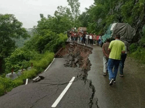 पंजाब के दुनेरा में पिछले 72 घंटों से हो रही लगातार बारिश के कारण पठानकोट और हिमाचल के चंबा के बीच नेशनल हाईवे 154A पर सड़क धंस गई है। यहां करीब 10 मीटर सड़क का हिस्सा पूरी तरह बैठ गया है। इस कारण पठानकोट और चंबा के बीच यातायात पूरी तरह बाधित हो गया है। सड़क के दोनों तरफ वाहनों की लंबी कतारें लग गई हैं। यात्रियों का आना-जाना भी रुका पंजाब से चंबा की ओर आने वाली रोजाना की जरूरी वस्तुओं जैसे दूध, ब्रेड, अंडे और सब्जियों की आपूर्ति रुक गई है। मणिमहेश यात्रा के लिए पंजाब से बड़ी संख्या में श्रद्धालु भरमौर आते हैं। सड़क बंद होने से यात्रियों का आना-जाना भी रुक गया है। एनएच प्राधिकरण के अधीक्षण अभियंता, शाहपुर ने बताया कि मौके पर मशीनरी और श्रमिकों को भेज दिया गया है। मौसम विभाग ने दी चेतावनी जल्द ही सड़क को बहाल करने का प्रयास कर रहे हैं। मौसम विभाग ने 14 अगस्त तक भारी बारिश की चेतावनी दी है। जिला प्रशासन ने लोगों को सलाह दी है कि वे बिना जरूरी काम के ऊंचाई वाले क्षेत्रों में न जाएं। साथ ही खुद भी सतर्क रहें और दूसरों को भी सावधान रहने की सलाह दें।