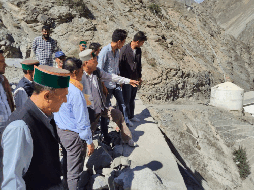 किन्नौर में बादल फटने के बाद गुरुवार को राजस्व, बागवानी एवं जनजातीय विकास मंत्री जगत सिंह नेगी ने घटनास्थल का दौरा किया। तिब्बत बॉर्डर ऋषि कांडा में बुधवार शाम को बादल फटने से पूह के पास होजो नाला में बाढ़ आ गई। बाढ़ से ऋषि डोगरी के लिए निर्माणाधीन सड़क कंपनी को भारी नुकसान पहुंचा है। पूह गांव की 11 करोड़ की उठाऊ पेयजल योजना की पाइप लाइन क्षतिग्रस्त हो गई है। सड़क निर्माण कंपनी का पुल, मजदूरों का डेरा और निर्माण कार्य में लगी मशीनरी को भी नुकसान पहुंचा है। स्थानीय लोग, पुलिस और प्रशासन राहत एवं बचाव कार्य में जुटे हैं। बाढ़ के कारण दूसरी तरफ फंसे कर्मचारियों तक भारतीय सेना भोजन पहुंचा रही है। सेना रात में ड्रोन से निगरानी कर रही है। एडीएम पूह रविंद्र सिंह ठाकुर ने बताया कि प्रशासन नुकसान का आकलन करेगा। राजस्व, बागवानी एवं जनजातीय विकास मंत्री जगत सिंह नेगी ने घटनास्थल का दौरा किया। उन्होंने स्थानीय ग्रामीणों और सड़क निर्माण कंपनी प्रबंधन से मिलकर स्थिति की जानकारी ली। राहत की सूचना है कि इस घटना में कोई जानी नुकसान नहीं हुआ है।